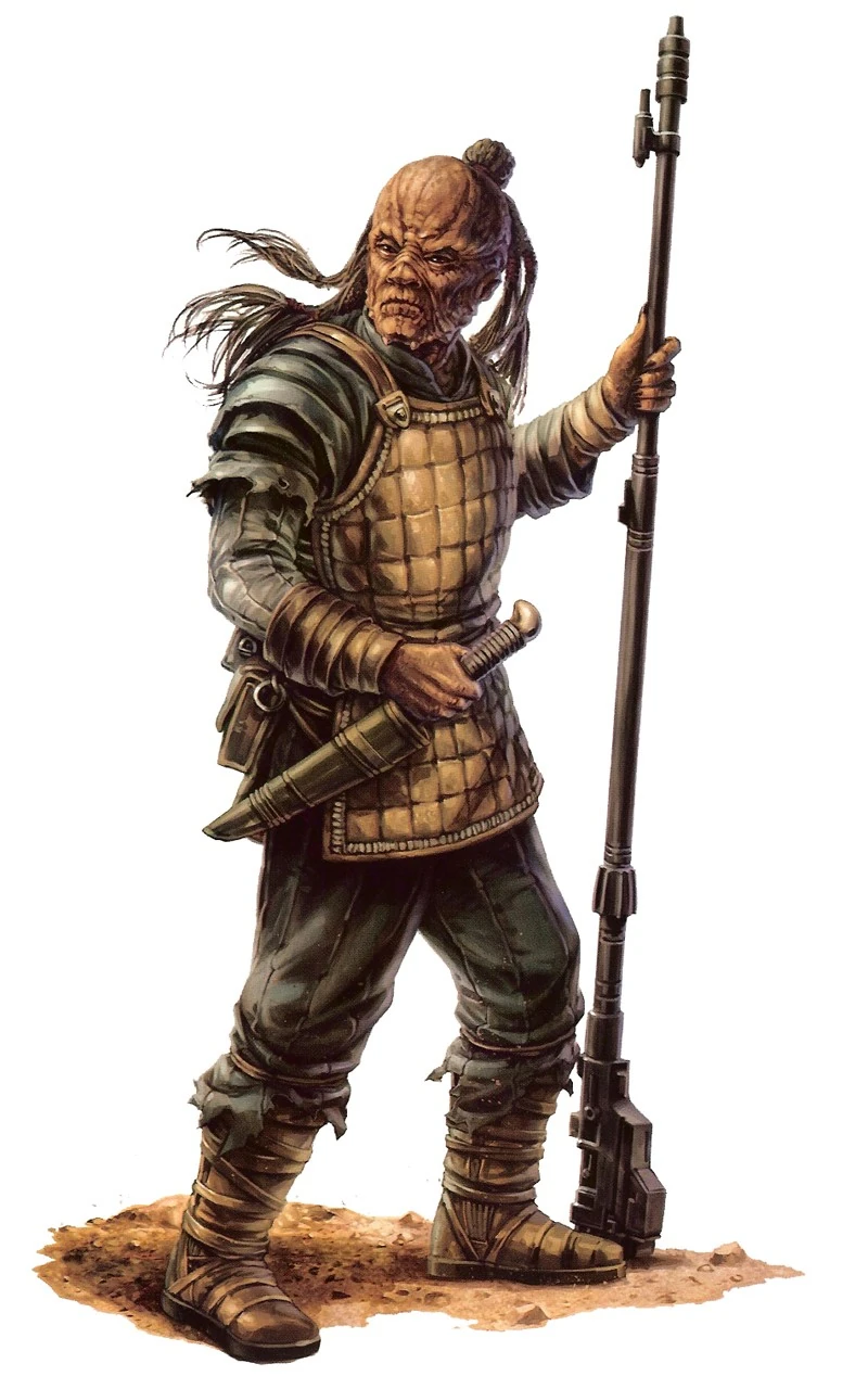 Уикуеите са хуманоидна раса от планетата Шрилур във Външния пръстен, в близост до Хътянското пространство. Родната им планета е със сурови пустинни условия, което е причина за грубата им набръчкана кожа и нейния пясъчен цвят. Очите им са тъмни и леко вдлъбнати навътре в черепа.