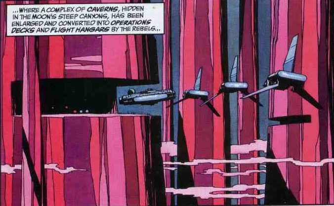 Byla vybudována uvnitř vysokých kamenných věží, které vznikly při pradávné vulkanické činnosti. Hangáry, komunikační centra a kasárna byly ukryty uvnitř věží, zatímco flotila vesmírných lodí kroužila kolem měsíce jako stráž.