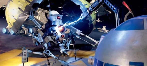 R2 kæmper mod en buzz droid.