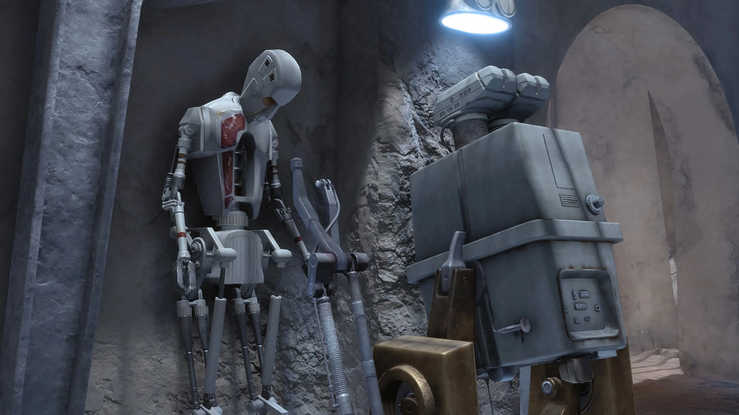 - «Puede que EV-9D9 diera las órdenes, pero 8D8 era quien las llevaba a cabo, en realidad.»