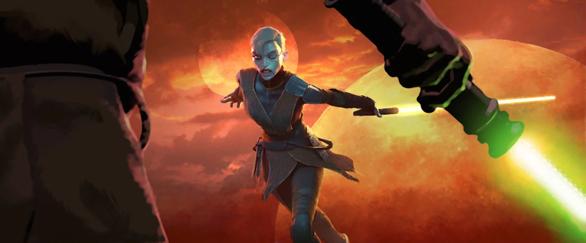 Ventress con su nuevo sable de luz, obtenido en el mercado negro.