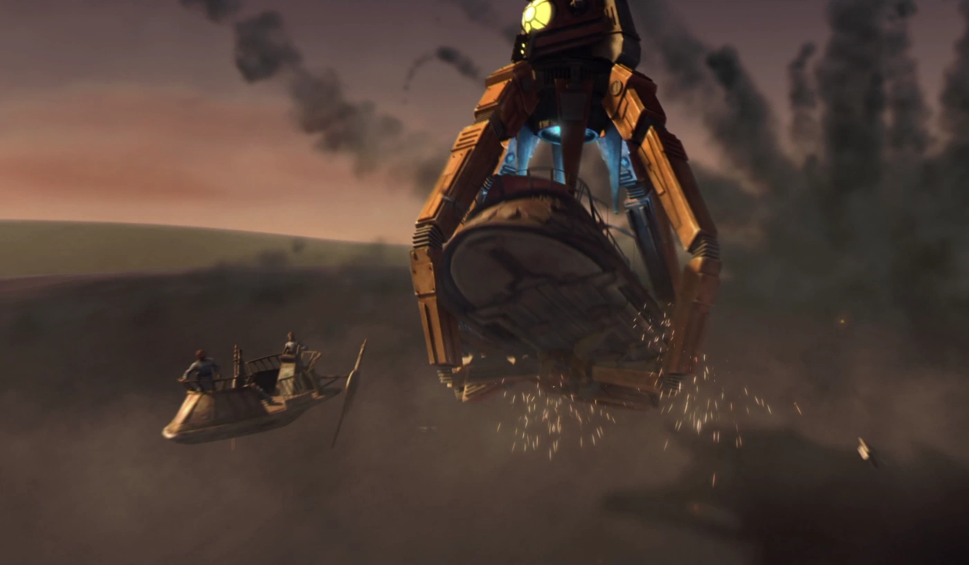 Ventress captura a Rotta, el hijo de Jabba, en su nave de asalto Tridente.