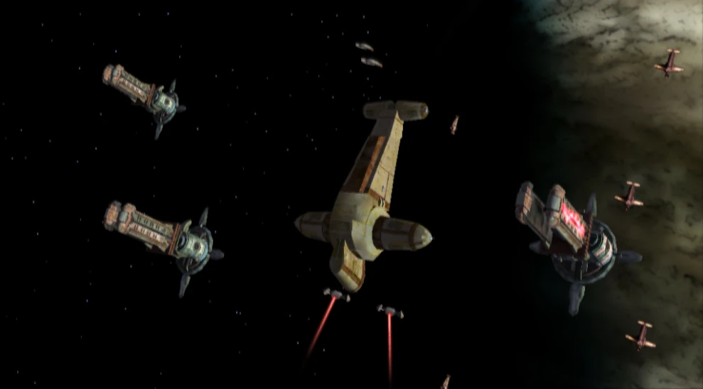 Los piratas espaciales aliados reunieron sus fuerzas y salieron del hiperespacio en cañones de defensa Orbital de la gama de Toth. Uno de los cruceros Mere, Kethor, fue desactivado y los combatientes de la resistencia se vieron envueltos en una pelea de cazas contra las fuerzas de la federación de comercio y el Escuadrón Sabaoth. Finalmente, el crucero dañado se pegó una de las plataformas de defensa planetaria, que permitió a los cazas romper las defensas restantes y descender sobre la superficie del planeta.