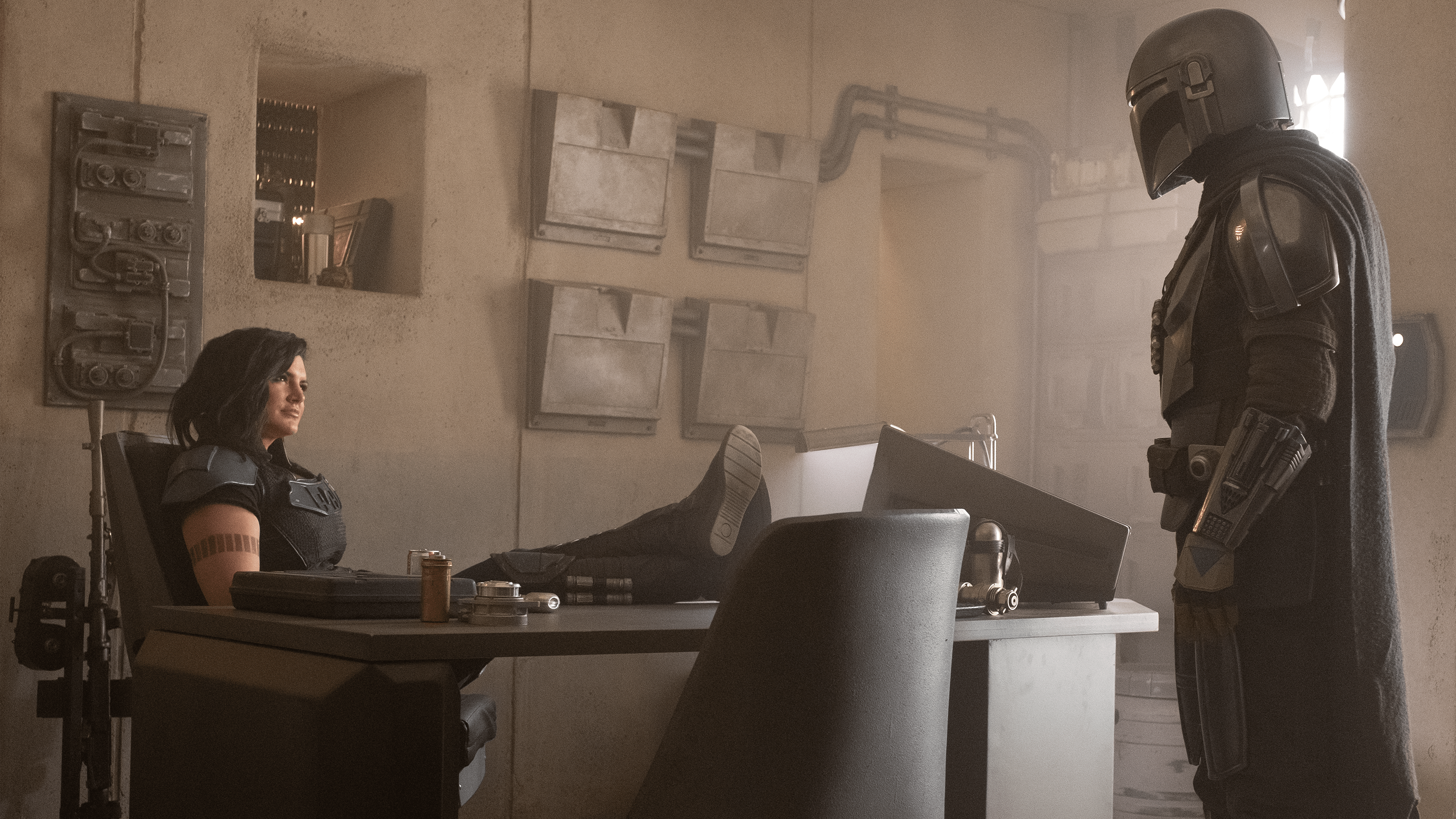 Dune supone que Mayfeld es un trabajo y le pregunta para qué lo necesita Djarin. Djarin explica que necesita su ayuda para localizar el crucero ligero del Moff Gideon. Dune simpatiza con la difícil situación de Djarin, pero dice que debe seguir las reglas como comisaria de la Nueva República. Djarin le dice a Dune que los Imperiales tienen al niño.