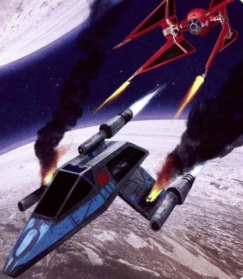 Un Ala-T bajo ataque de un caza estelar de la Guardia Real.