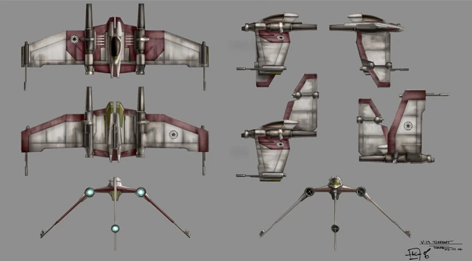 El V-19 sirvió como un predecesor del caza estelar Alfa-3 clase Nimbus Ala-V, en términos de uso y propósito.[13]