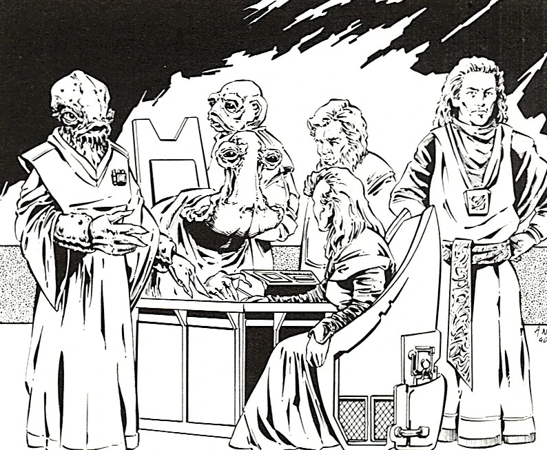 Poco después de la Batalla de Yavin, el Consejo estaba formado por al menos tres humanos, un mon calamari, un sullustano y un ithorinao.[1]