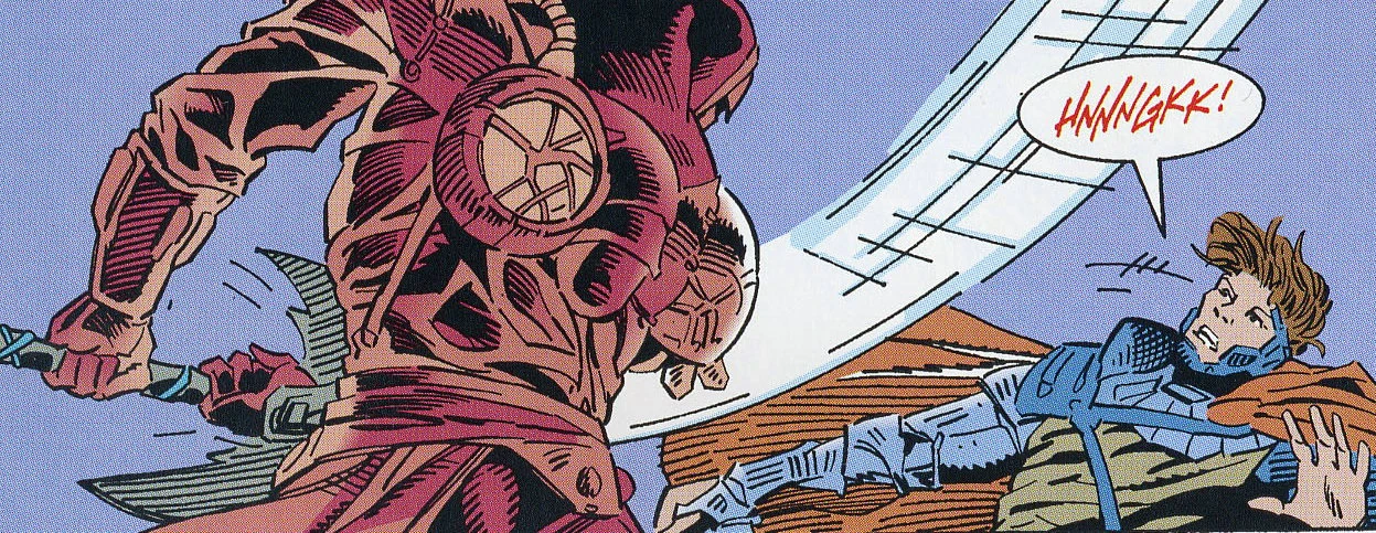 El duelo en Kuar apareció por primera vez en el número The Sith War 1: Edge of the Whirlwind de la serie de cómics Tales of the Jedi. La batalla fue concebida y escrita por el autor Kevin J. Anderson y dibujada por el artista Dario Carrasco, Jr. Anderson usó al cómic Edge of the Whirlwind, junto con el duelo en Kuar, para reintroducir a los clanes Mandalorianos al universo de Star Wars.[2] El duelo posteriormente apareció en Star Wars Knights of the Old Republic 48: Demon, Part 2 durante un flashback sobre los orígenes de un personaje Mandaloriano de la serie Knights of the Old Republic, el doctor científico Demagol.[4]