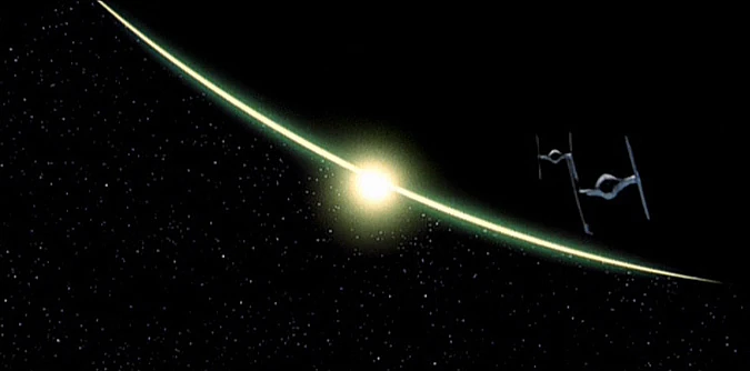 La estrella Bespin tras el planeta gaseoso del mismo nombre.