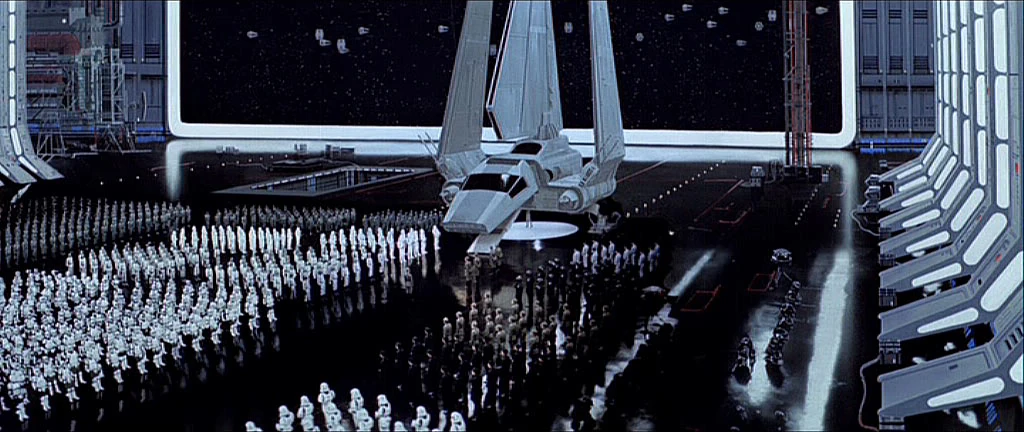 El Emperador Palpatine llega a bordo de la Estrella de la Muerte II.