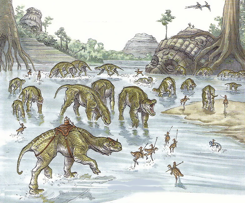 Sus únicos depredadores conocidos eran los monstruos acuáticos sando, que abrían una brecha en la superficie de las aguas del pantano desde el océano abisal.