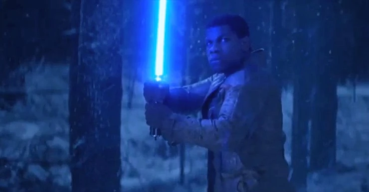 Finn con el antiguo sable de luz de Skywalker.