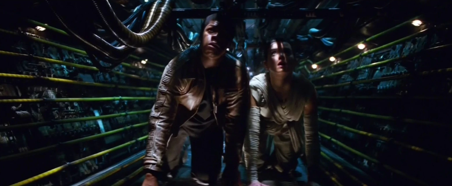 Rey y Finn se arrastran a través del Eravana para evitar ser detectados.