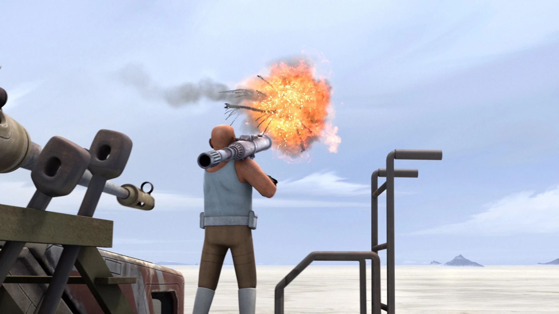 Rex pasó un lanzacohetes a Gregor, que se ofreció voluntario para destruir al TIE. Apuntando al TIE imperial, Gregor disparó el lanzacohetes y destruyó al TIE con sólo un disparo. Rex, entusiasmado, elogió a Gregor exclamando que a pesar del paso del tiempo, Gregor aún seguía poseyendo excelentes aptitudes para el combate. A continuación, Wolffe avistó a 3 AT-AT imperiales aproximándose a su posición. Por eso, Gregor y Rex se reunieron con Wolffe para avistar la próxima oleada de ataques imperiales.[15]