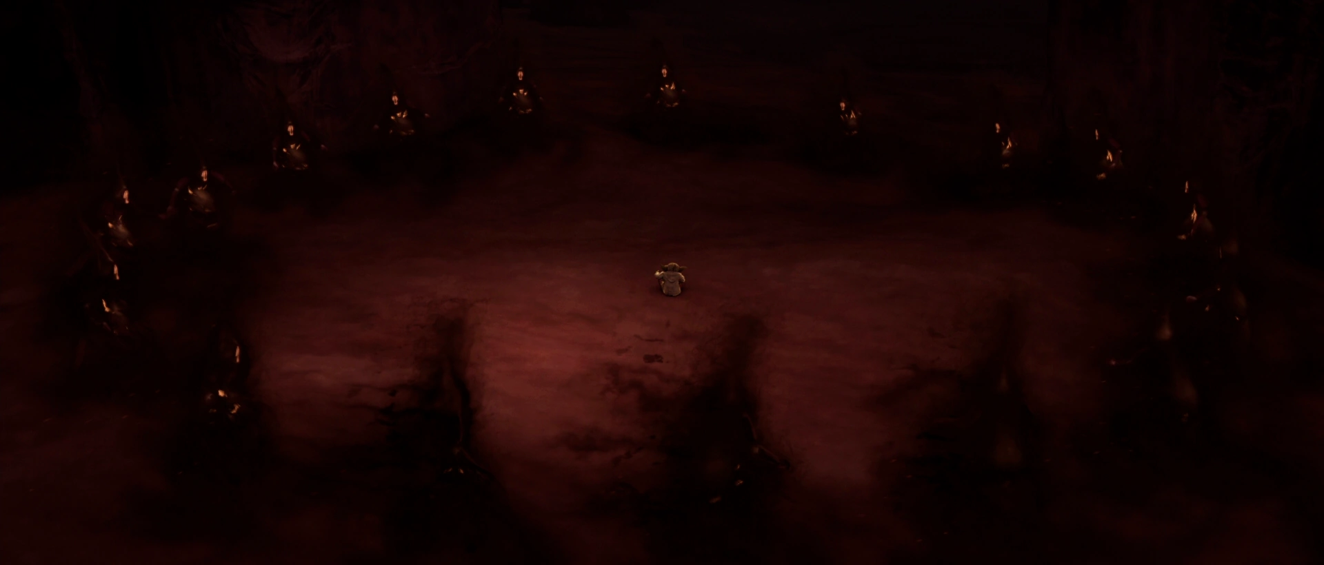 Yoda es rodeado por diecisiete espectros de Guerreros Sith.