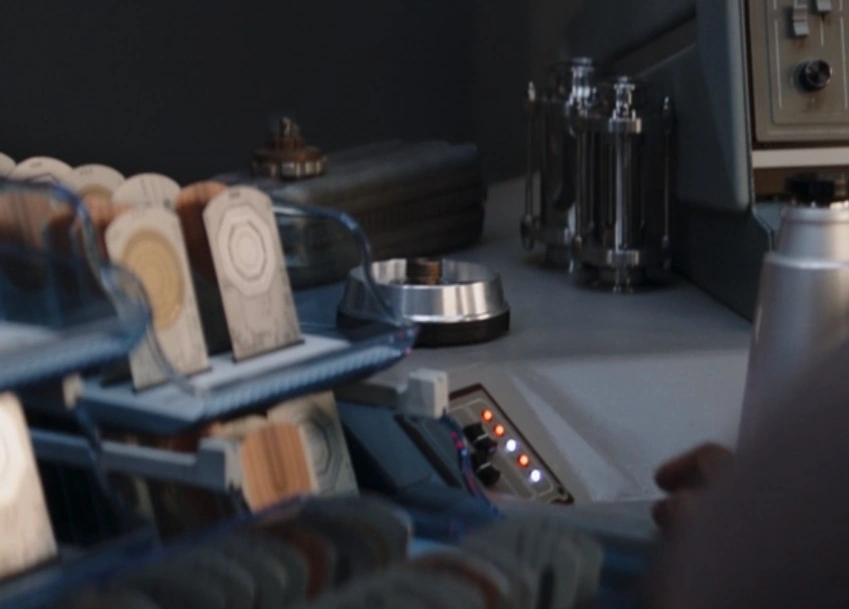 Un holoreproductor apagado encima del escritorio del Coronel Tuttle.