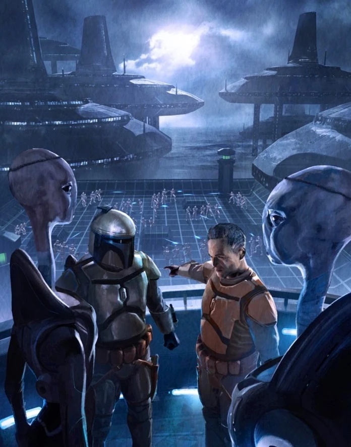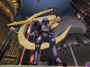 Jango Fett en Coruscant en su búsqueda del Bando Gora