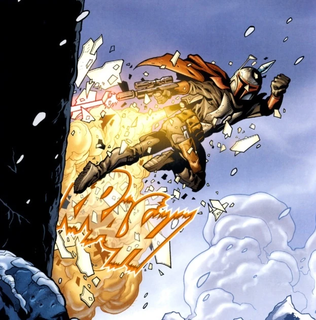 - Tanto Jango como Boba sufrieron derrotas o incluso la muerte por sus mochilas jet. En el duelo que tuvo Jango contra Obi-Wan en Kamino, la mochila jet de éste se separó por sí sola de Jango y ya fuera de control, explotó al chocar en una columna, lo cual casi ocasiona que Jango cayera en el interminable océano de Kamino; luego, en Geonosis, al descomponerse al mochila jet de Jango a causa del reek, Jango no pudo huir de la arena y fue decapitado por Mace Windu. En el Episodio VI, Boba, al pelear con Luke Skywalker en Tatooine, cayó en la fosa donde se encontraba el Sarlacc al ser su mochila jet activada por Han Solo.