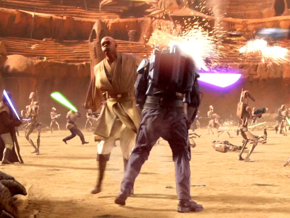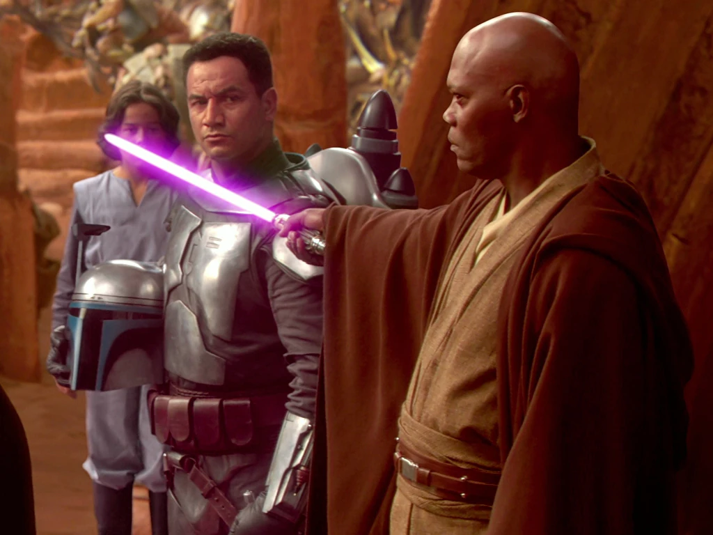 El Maestro Jedi Mace Windu decapita a Jango Fett.