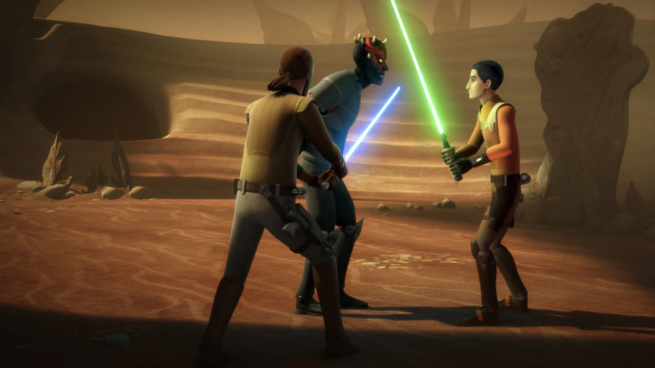Kanan se enfrenta a Rukh durante el rescate de Hera Syndulla.