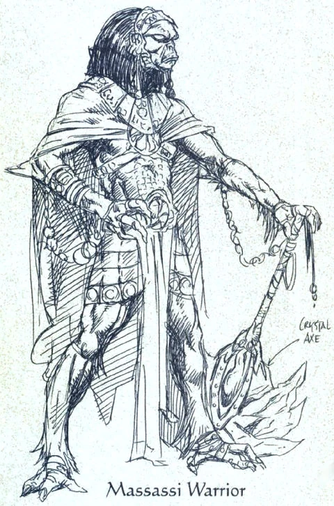 Los massassi bajo el mando de Naga Sadow que se trasladaron a Yavin 4 después de la Gran Guerra Hiperespacial sufrieron alteraciones alquímicas bajo la supervisión de Sadow. Estos individuos y sus descendientes se volvieron más encorvados y monstruosos que la especie massassi original, y gradualmente fueron considerados más brutos salvajes que los guerreros que alguna vez fueron. En este punto, se convirtieron en criaturas grandes con garras afiladas y grotescos crecimientos en forma de aletas en la cabeza y la espalda.[12]