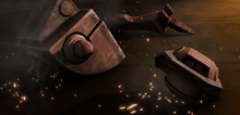 Los restos del droide táctico serie T TX-21 espués de ser destruido por un detonador térmico durante la Segunda Batalla de Geonosis.