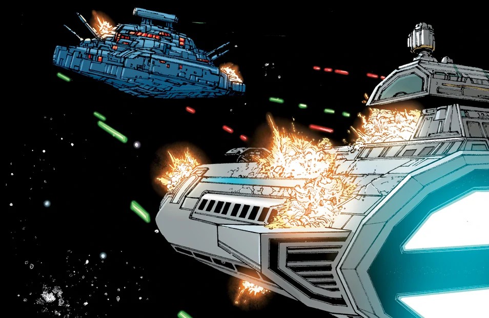 Un transporte de la República emboscado por una nave de guerra Sith