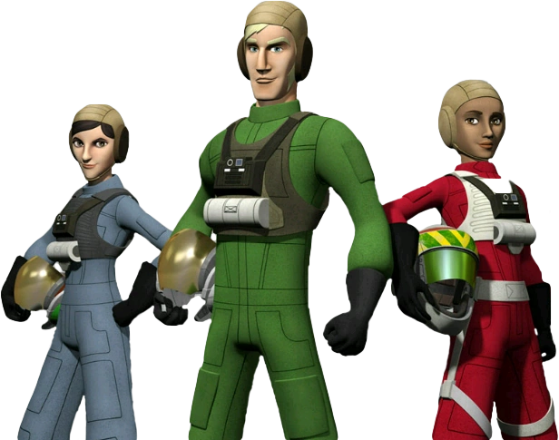 Rebel Pilots en la Encyclopedia de StarWars.com (Primera vez identificado como Piloto Rebelde)- Star Wars Costumes: The Original Trilogy (Primera vez identificado como Piloto de caza rebelde)