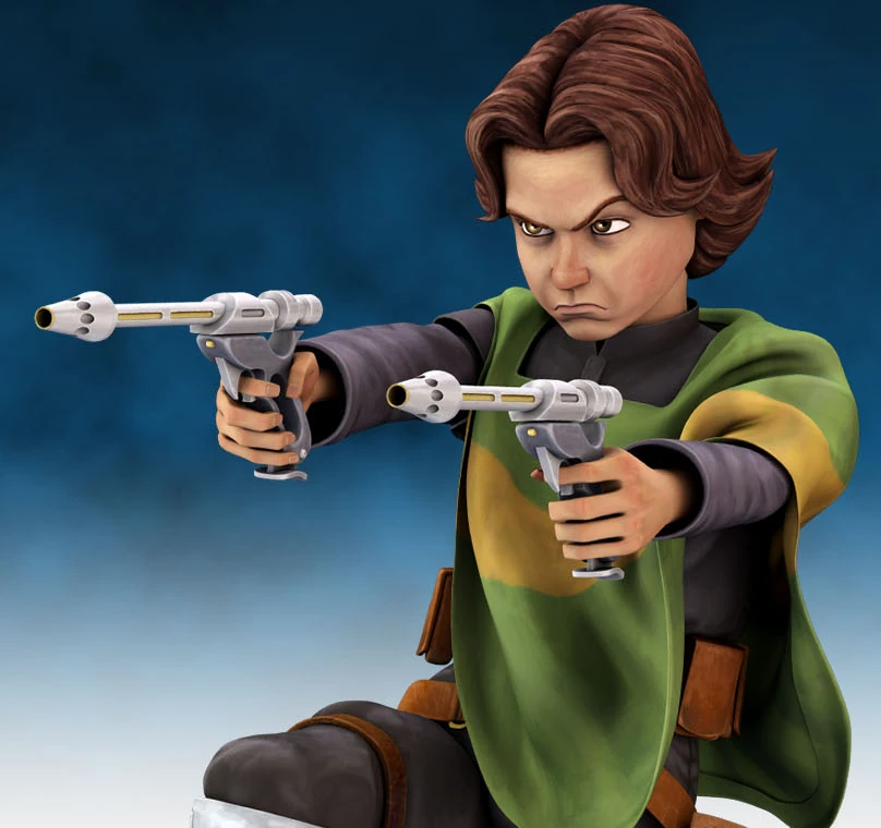 Un joven Boba Fett blandiendo sus pre-modificadas pistolas WESTAR-34.