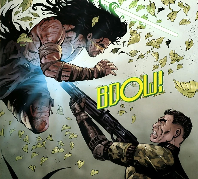 A pesar de estar gravemente herido y ser perseguido por sus propias tropas, Quinlan consiguió sobrevivir recordando antiguas lecciones que le dieron sus maestros (Yoda, Dooku y Mace Windu). Al ver que no conseguía matarle, el comandante Faie amenazó a Quinlan con hacer bombardear toda la zona, matándolos a ellos y al poblado wookie cercano, a menos que se entregara.