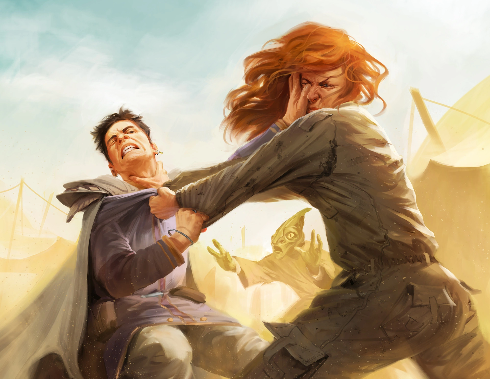 Un par de refugiados peleando.