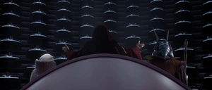 Desilusionada por las políticas de la República, la Reina Amidala le pide al Senador Palpatine que traiga cordura al Senado.