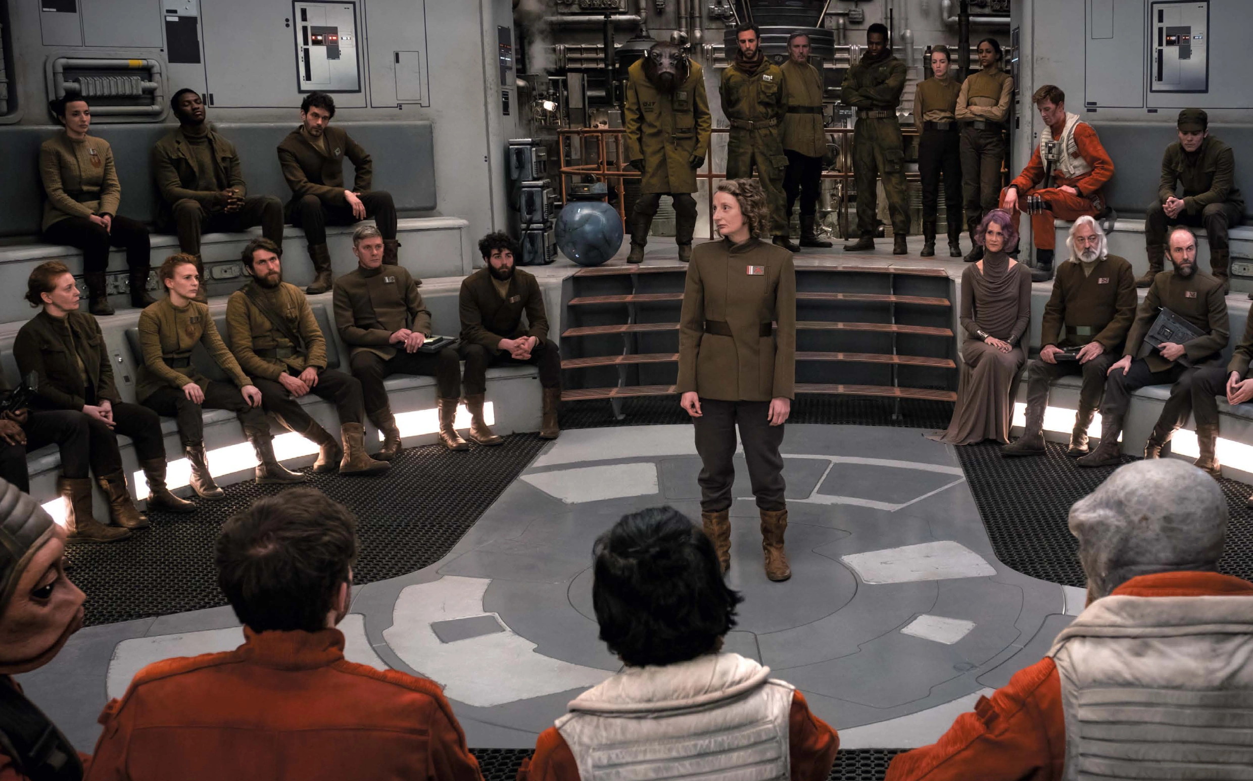 Miembros de la Resistencia reunidos a fuera de la base de D'Qar.