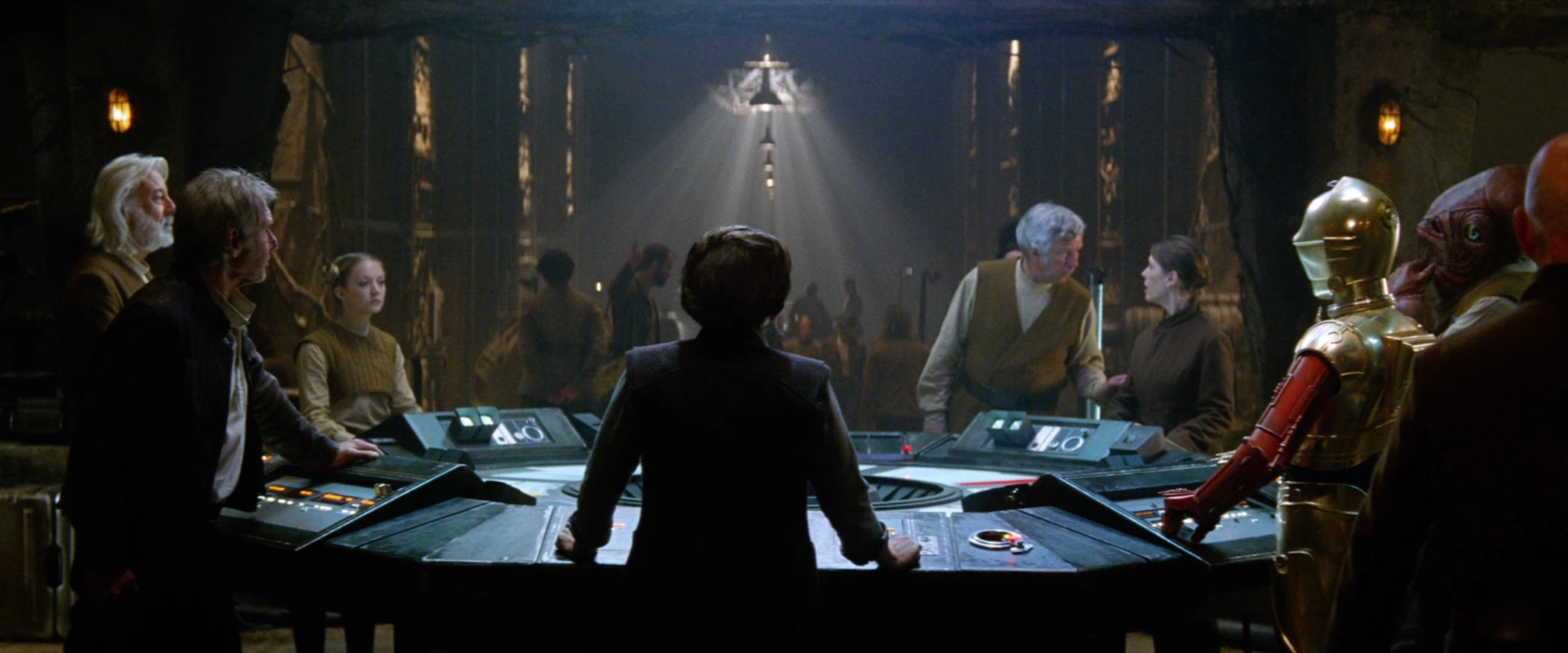 Durante su conflicto con la Primera Orden, la Resistencia buscó la ayuda del Maestro Jedi Luke Skywalker. Durante su búsqueda, lanzaron una batalla para destruir la Base Starkiller, la superarma de la Primera Orden que destruyó el sistema Hosnian y, con ello, el Senado Galáctico que había tolerado silenciosamente las actividades de la Resistencia. El asalto a la Starkiller fue exitoso y, poco después, la Resistencia encontró a Skywalker viviendo en el exilio.