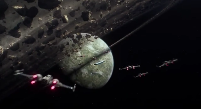Dameron lidera los escuadrones de Alas-X contra la superarma Starkiller.