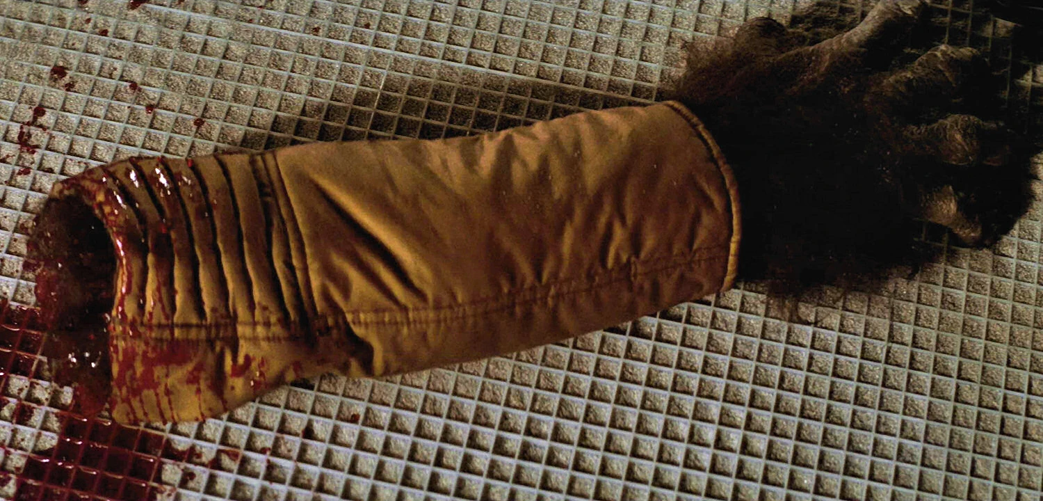 Un brazo recién cortado que drena sangre.