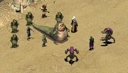 Tann, acompañada por un par de droidekas, se encuentra con Boorka el hutt