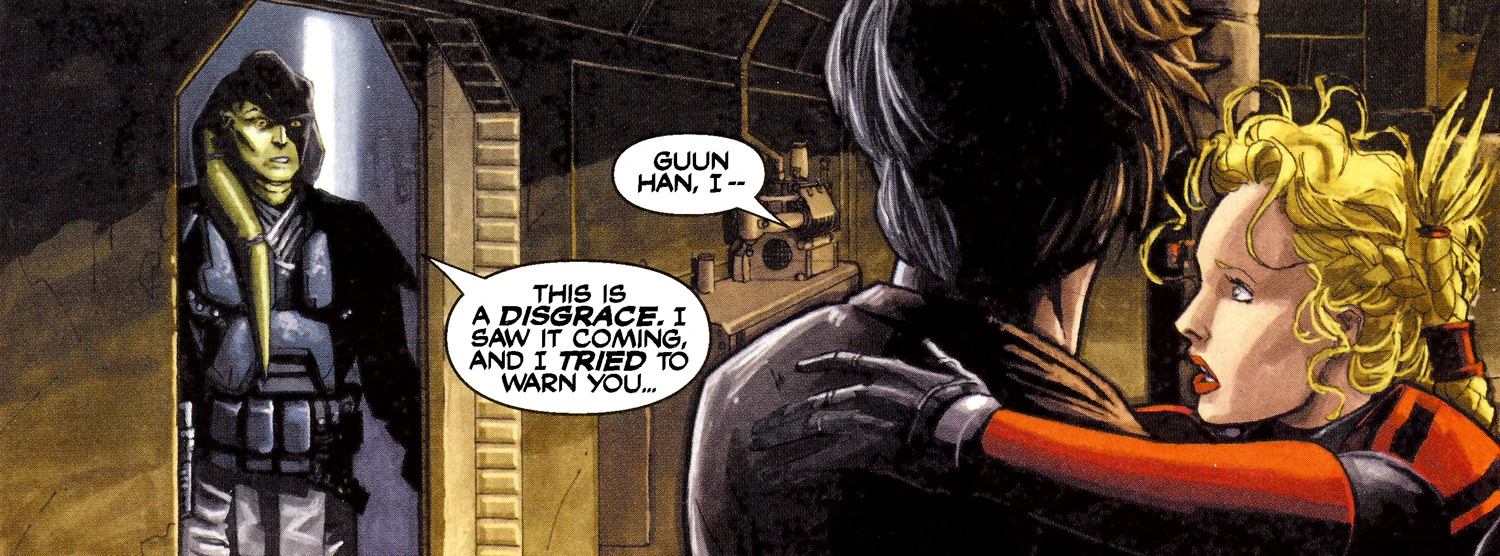 - Guun Han Saresh: «¿Entonces por qué están caminando el sendero del lado oscuro?»