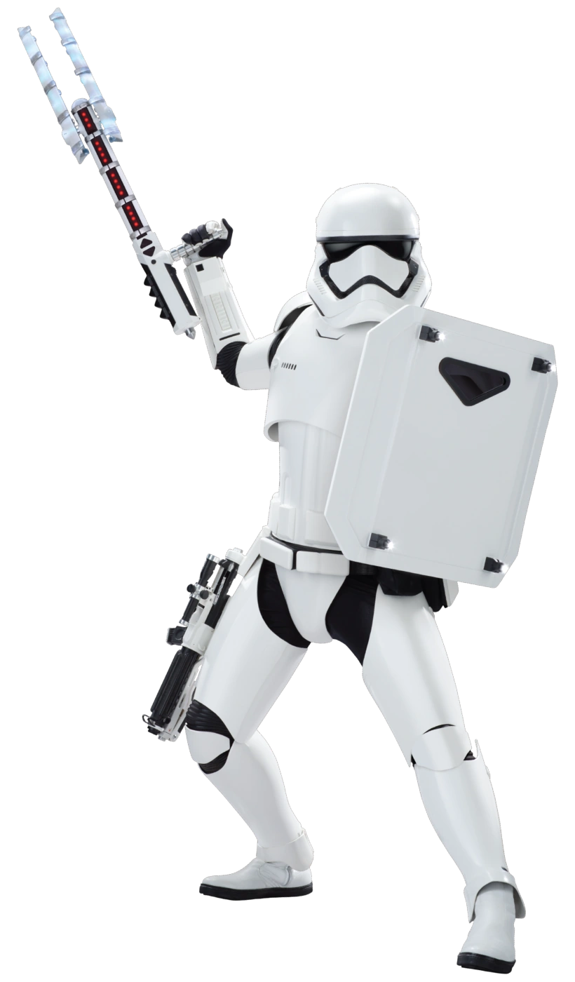 El soldado de asalto antidisturbios era una variante especializada del soldado de asalto estándar de la Primera Orden. Asignados para mantener el orden en los mundos dentro del territorio de la Primera Orden, fueron entrenados en tácticas de control de disturbios y se les asignaba equipamiento no letal,[1] como escudos balísticos ligeros antidisturbios compuestos de betaplastoide y porras antidisturbios Z6[6] (que podían resistir a sables de luz).[2] Sin embargo, también portaban armas letales, como el rifle bláster F-11D de Sonn-Blas, en caso de que las situaciones se descontrolaran.[1][6]