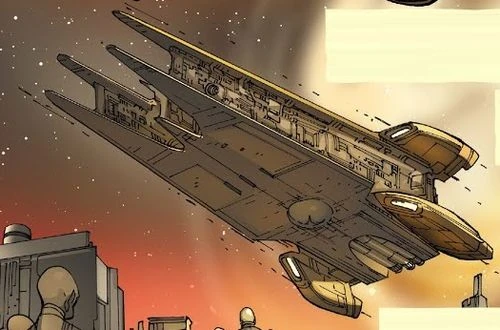 La superarma de Momin apareció por primera vez en el cómic canon de 2018 Darth Vader: Lord Oscuro 22 en una retrospectiva. El cómic fue escrito por Charles Soule e ilustrado por Giuseppe Camuncoli.[1]