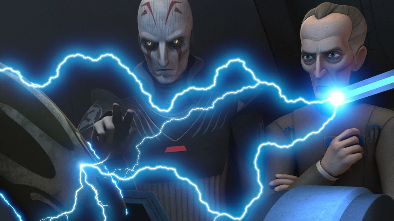 Tarkin nervioso porque Kanan no se rinda al recibrir rayos de fuerza del Inquisidor