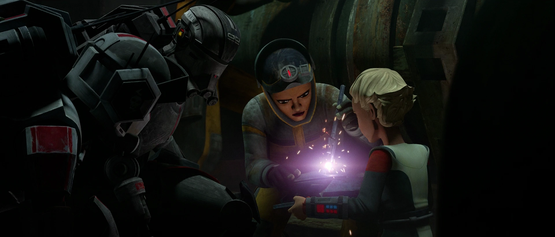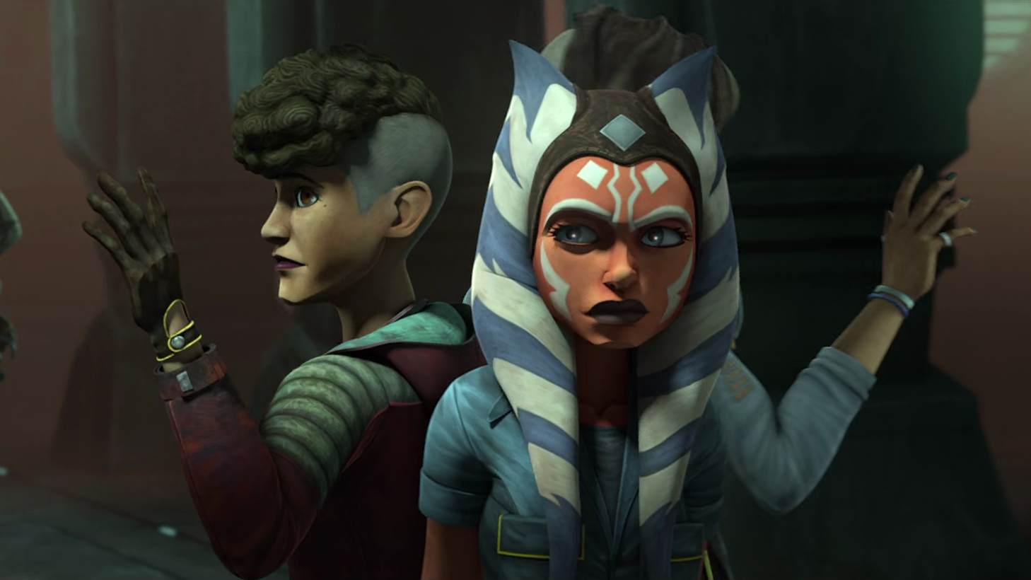 Ahsoka rescatando a las hermanas Martez del Sindicato Pyke en Oba Diah.