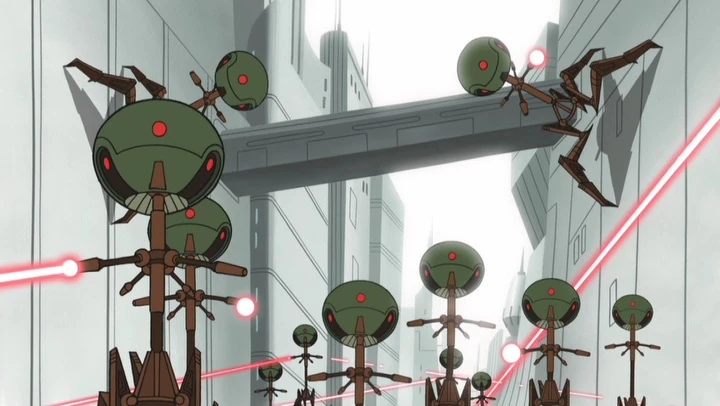 Tri-droides de combate Octuptarra durante la Batalla de Coruscant.
