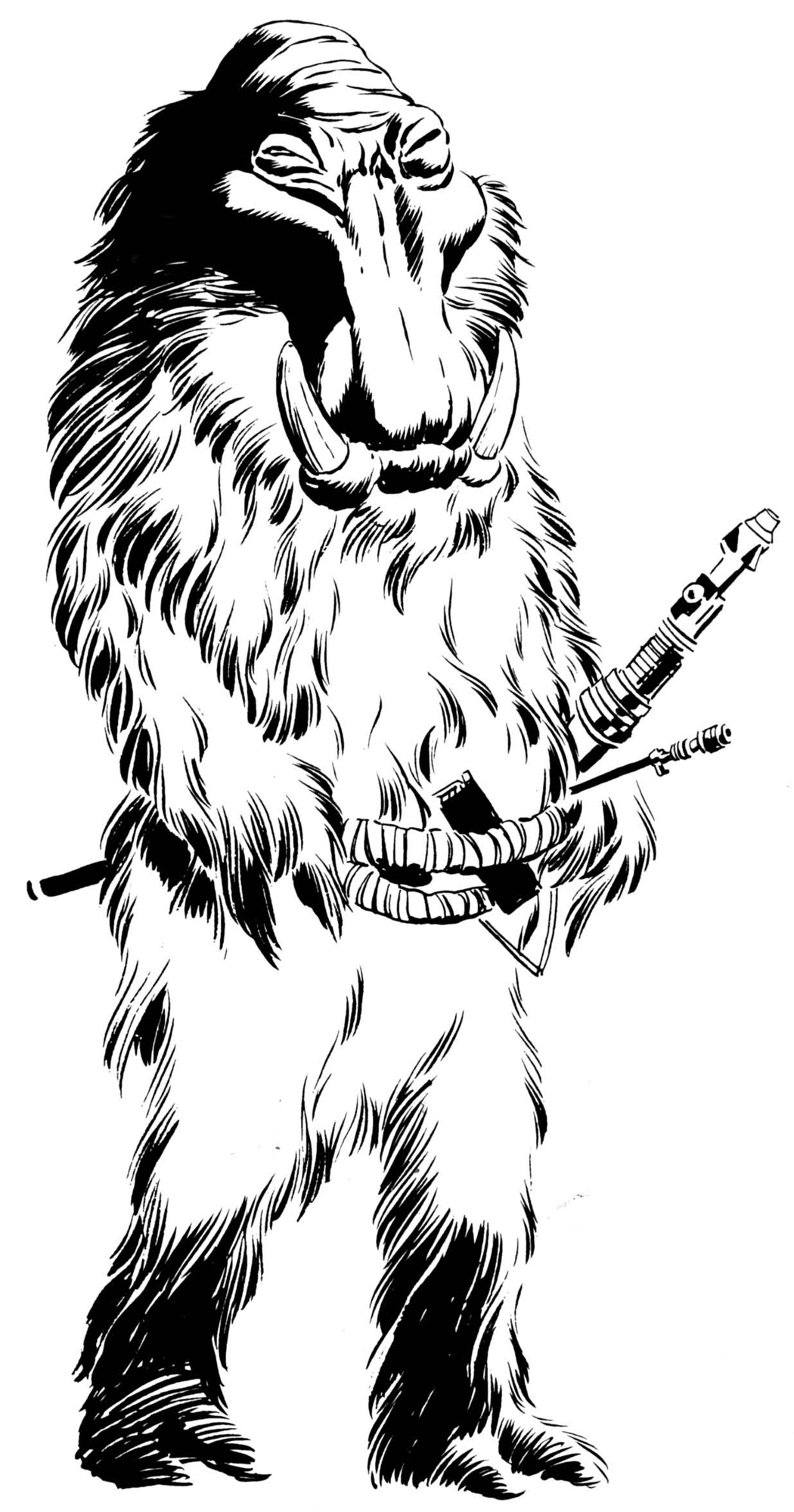 Los whiphid eran seres inteligentes altos, musculosos y peludos del planeta Toola. Eran notables por sus grandes colmillos. En Toola, los whiphids vivían un estilo de vida primitivo, cazando carabooses y otros animales grandes, como el motmot, su presa favorita. Su lenguaje consistía en aproximadamente seis mil palabras. Cuando los whiphids entraron en contacto con razas más avanzadas que llegaron a Toola para comprar hielo, comenzaron a mostrar una gran curiosidad sobre el resto de la galaxia. Muchos whiphids abandonaron Toola, manteniéndose como cazadores de juegos de caza, mercenarios o cazarrecompensas.