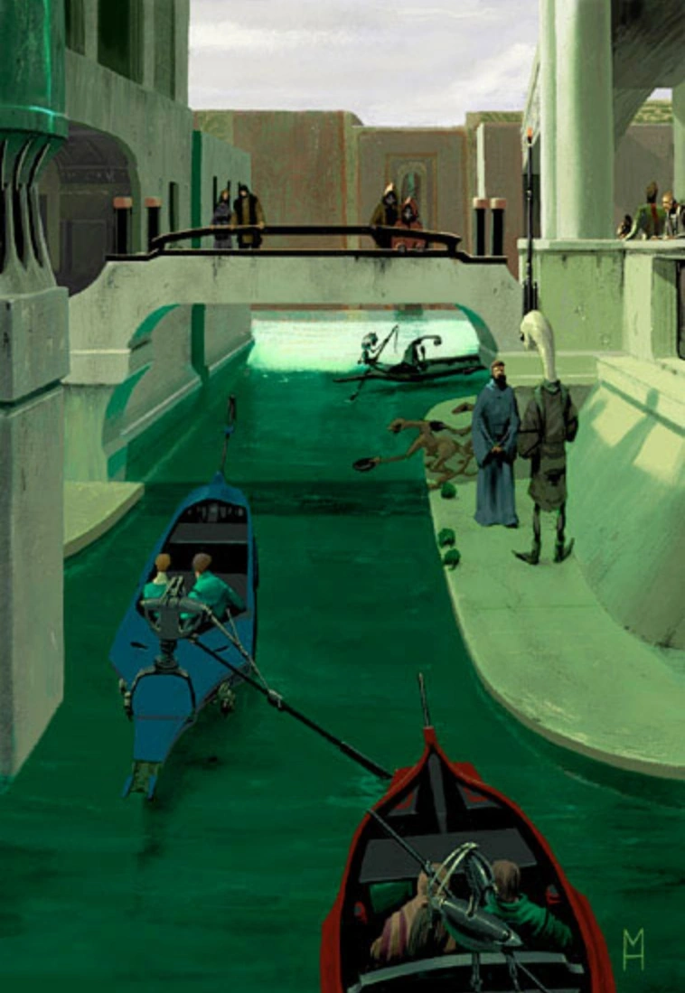 Les spatioports concentrent toute la vie économique et sociale de la population « civilisée » d'Abregado-rae, comme en témoigne l'organisation de l'espace urbain.