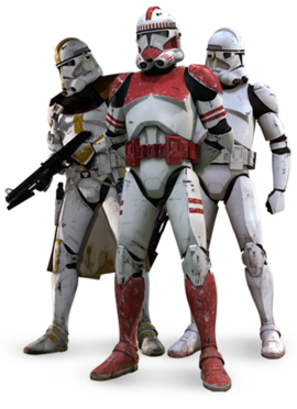 L'armure des soldats clones constituait leur seul rempart face aux tirs de blaster. Il en existait deux types : les armures phase I, utilisées au début de la Guerre des Clones, et les armures phase II qui les remplacèrent vers la fin de la guerre.