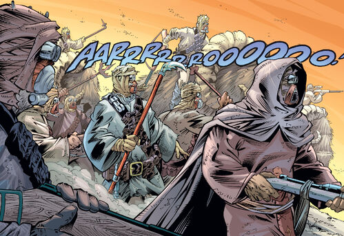 En 32 av.BY, un groupe de Tuskens dirigés par Sharad Hett attaqua le site commercial de Mochot Steep sur la planète Tatooine. À ce moment, le site était rempli de civils qui achetait des armes pour se protéger des Tuskens qui devenait de plus en plus violents. Parmi les tués figuraient en autre un fermier d'humidité, un marchand d'armes Trandoshan et Conil Barje. Par contre, Hett épargna la femme et le bébé de Barje.