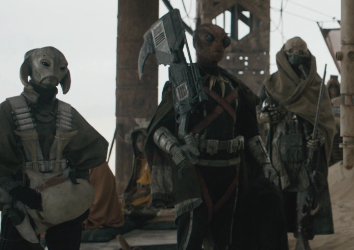 @deetails (Dee Tails) sur Twitter. “Yeah, Regineer Teed, is me. Gelan Yees, Dilu Miah. Auromae Iselo, Derek Arnold. Tubes, Aiden Cook aka Two Tubes. Silvasu Fi, Stephanie Silva. Faddera Rabar, Barbara Fadden. Other than Warrick (Weazel) and Erin (Enfys) the others are stuntmen and women.”