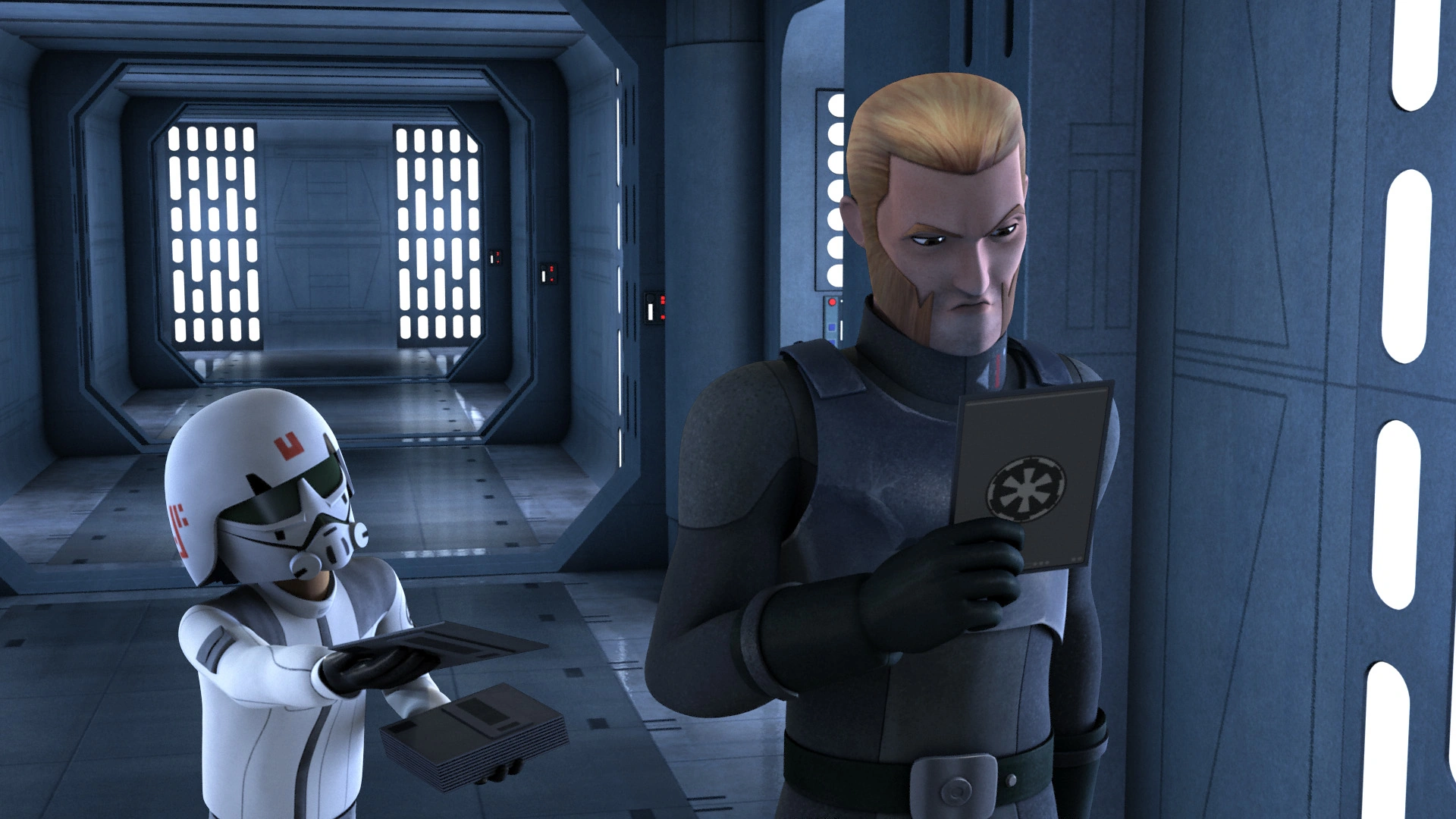 Bridger, réaffecté au Complexe Impérial, fournit à l'Agent Kallus son nouveau datapad.