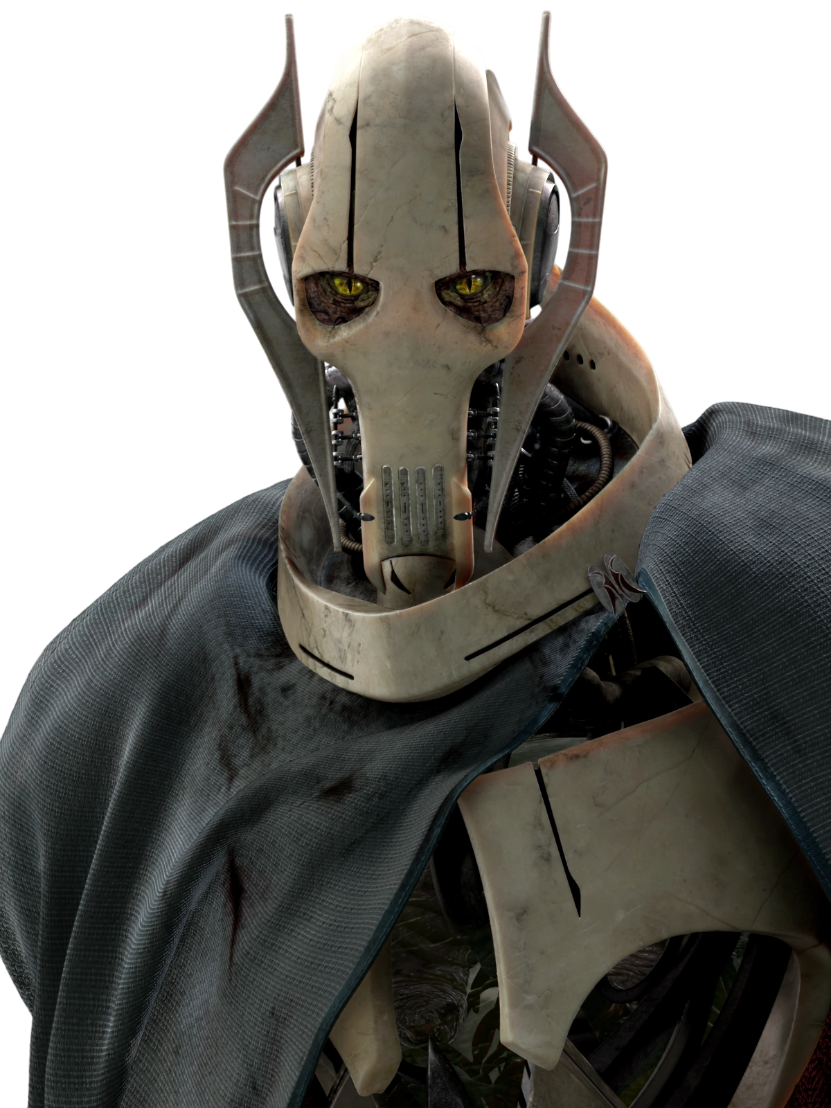 Grievous était un cyborg Kaleesh , général de la Confédération des systèmes indépendants qui dirigea l'armée droïde pendant la Guerre des Clones . Originaire de la planète Kalee , il fut recruté par la CSI qui lui fournit des implants mécaniques le rendant plus puissant.
